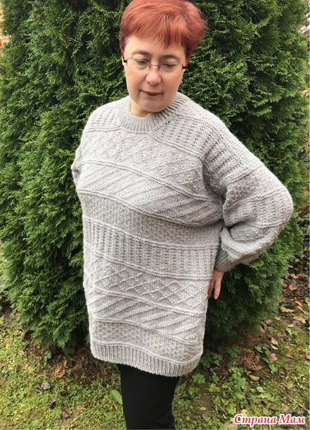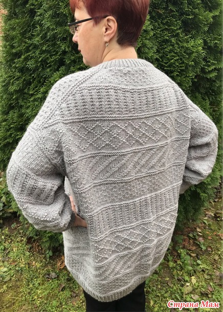 И вот свитер готов - свобода облегание этого свитера 25-26 см, я вязала на свой 50/52р. - по писанию для размера М.