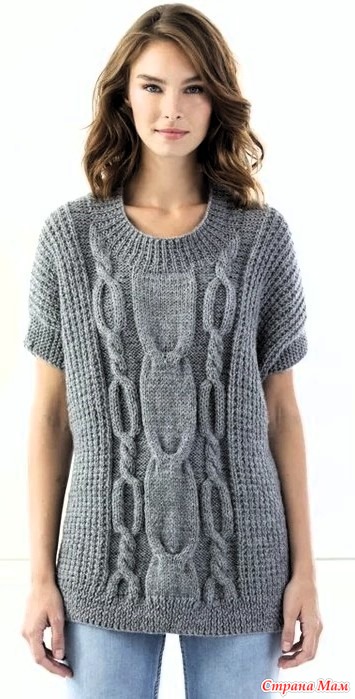 Пуловер с крупными "косами" Modern Cable. Спицы.