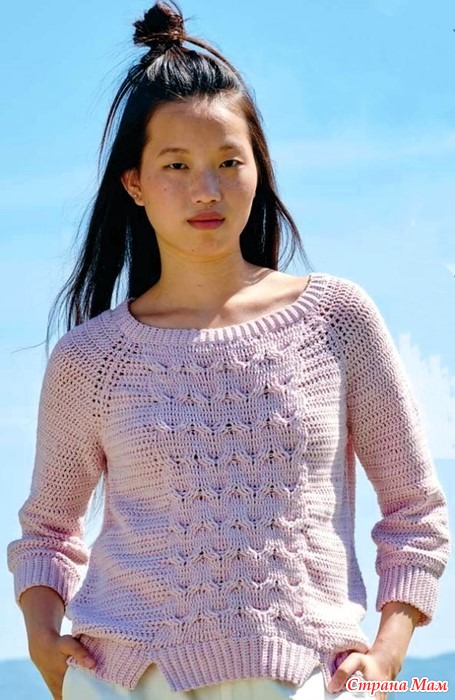 Джемпер с рукавами реглан и узором косы.