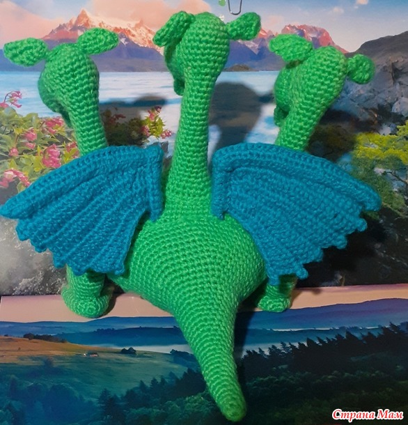Трехголовая получилась около 20 см в длину, чуть меньше в высоту.