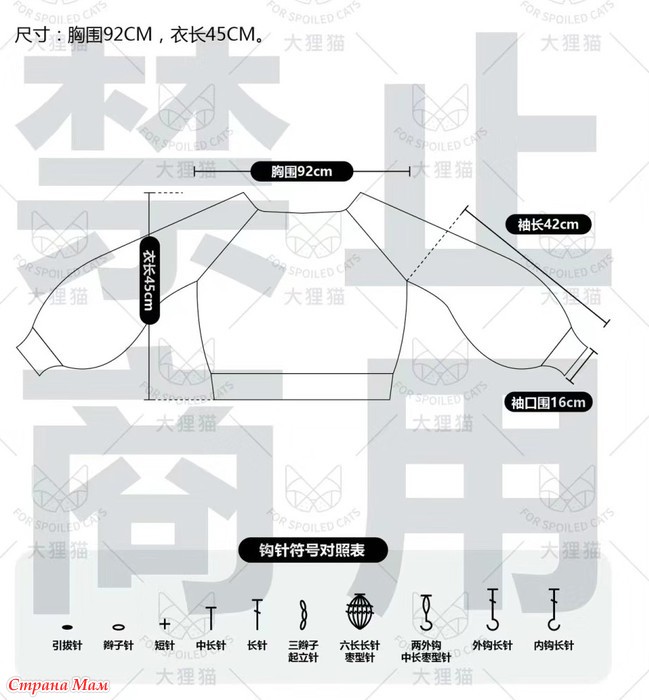 Обхват груди 92 см. Длина 45 см. Длина рукавов 42 см.