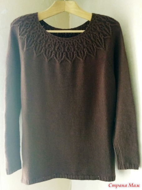 , и я решила добавить их по бокам и на рукавах.Получился вот такой джемпер, который никак не хочет показать свой реальный цвет).