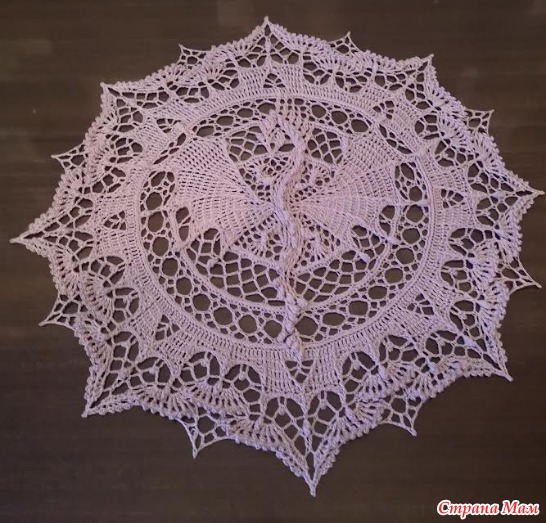 Решила повторить "Дракона, но уже с каймой. Потому что эта кайма была связана в салфетке "Арктика", но вязала я ее неправильно. Не заметила что на схеме , под ССН есть маленькие галочки, которые указывают что столбики вяжутся в раскол, ну и еще нашла ляпов своих. Если бы начала знакомство с работами Даши именно с Дракона, то непоняток бы не было. Так что вот что получилось. Теперь все правильно связала. Правда цвет телефон передает не совсем тот и может надо было в принципе брать другой цвет...поярче, но уж что получилось. Диаметр салфетки 45см. Нитки Ярнарт виолет, 282м/50гр, крючок 1,25.