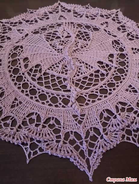 Решила повторить "Дракона, но уже с каймой. Потому что эта кайма была связана в салфетке "Арктика", но вязала я ее неправильно. Не заметила что на схеме , под ССН есть маленькие галочки, которые указывают что столбики вяжутся в раскол, ну и еще нашла ляпов своих. Если бы начала знакомство с работами Даши именно с Дракона, то непоняток бы не было. Так что вот что получилось. Теперь все правильно связала. Правда цвет телефон передает не совсем тот и может надо было в принципе брать другой цвет...поярче, но уж что получилось. Диаметр салфетки 45см. Нитки Ярнарт виолет, 282м/50гр, крючок 1,25.