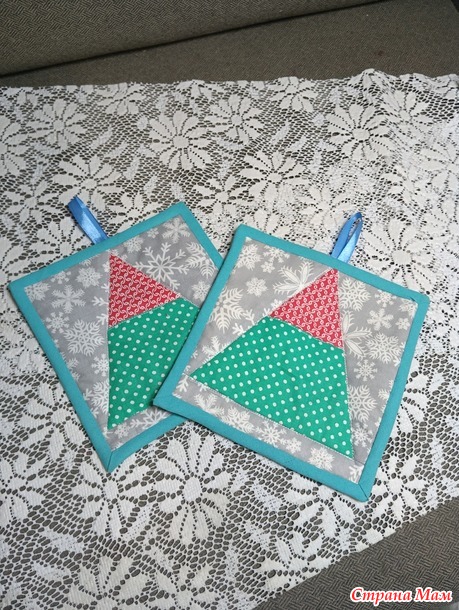 Вот, что Лариса сделала своими золотыми ручками для меня, по настоящему новогодние прихватки !!!!