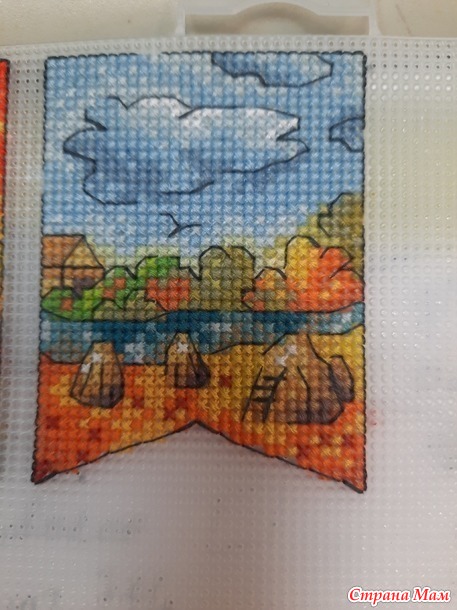 Не, листок ещё столько же влево. Там ещё одна собачка и лиса. И потом справа будет ещё один листок. Шьётся крестом. Полукрест был немного сверху, вроде травка.