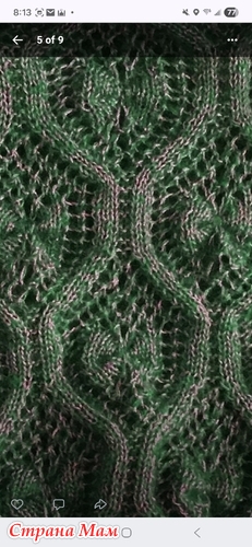 Вот этот узор. Олеся Данилюк использует этот узор в своих авторских пуловерах, но оригинальная схема была именно в немецких журналах 90-х годов. Я ищу тот самый оригинальный пуловер, связанный этим узором, с v-образным вырезом.