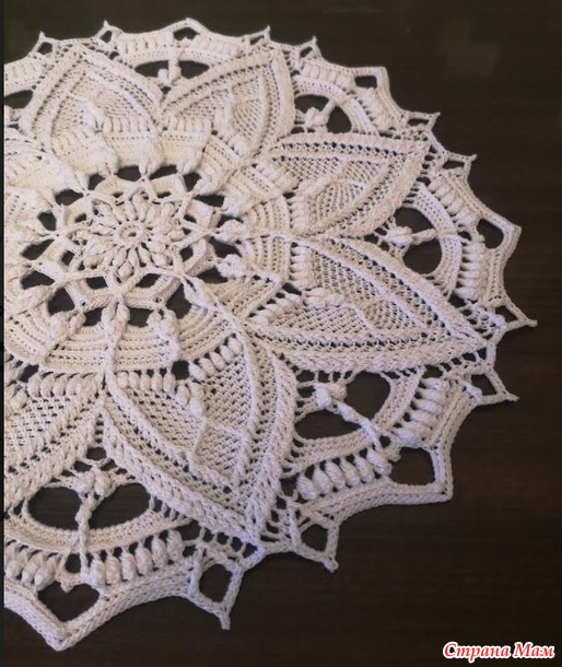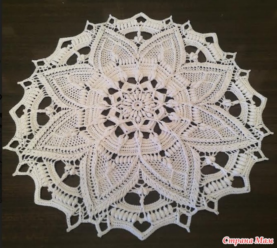 Эту салфетку я увидела в ИГ, но никак не могла найти МК по ней, пока мне не подсказали и не дали ссылку в ВК. Дизайн и МК Надежды Клюевой. Мк в свободном доступе у мастерицы в ВК. Нитки Ярнарт виолет, 280м/50гр, крючок 1,25, диаметр получился 40см. Ушло 1,5 мотка ниток. Мк очень хорошее, понятное, так что вязалось без проблем.
