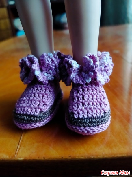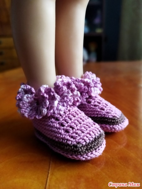 Вдобавок связала ботиночки с оборочкой.