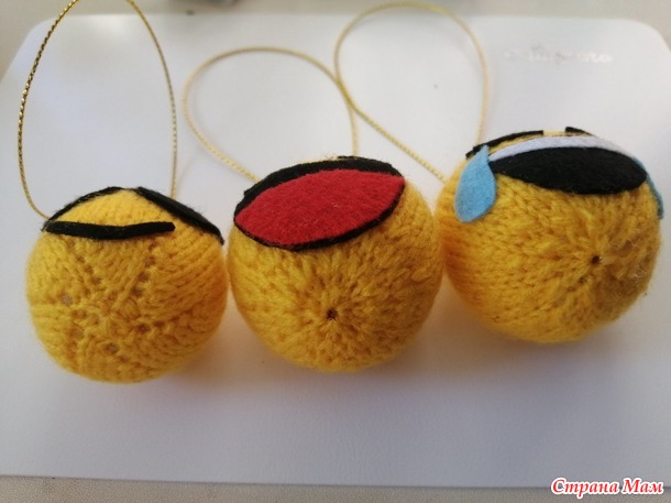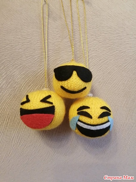 После снятия гипса решила начать вязать самое простое - Смайлики.