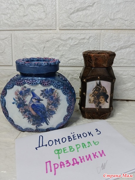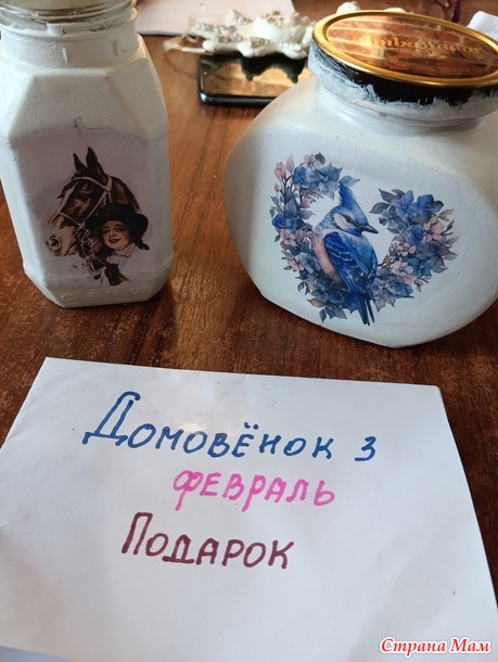 Домовенок-3. Февраль. Декор баночек с кофе.