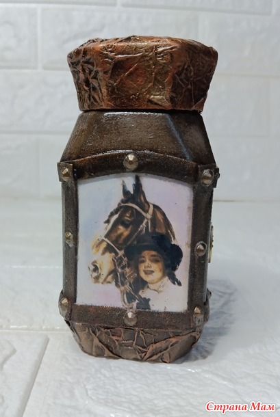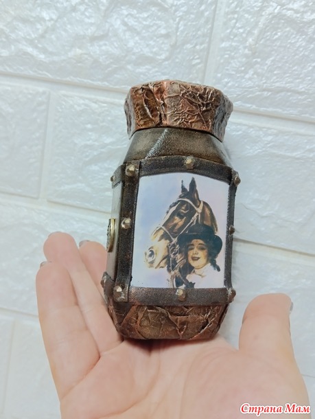 У нас сейчас пасмурно, искусственный свет совсем не помощник. Приходилось брать баночки в руки и ловить более менее хороший свет. Эту баночку декорировала под имитацию кожи.