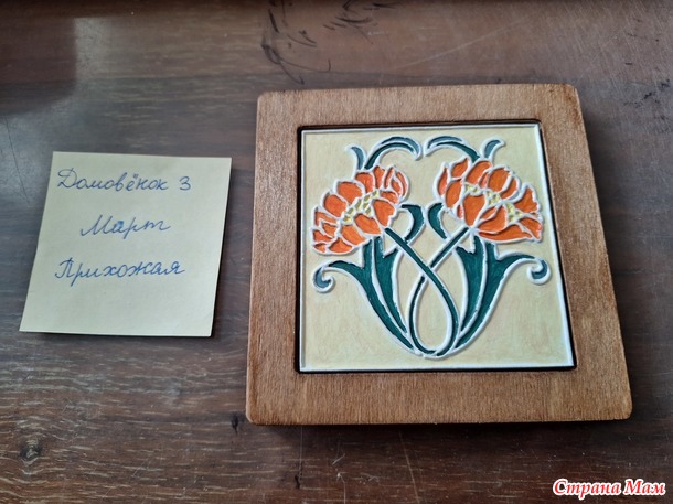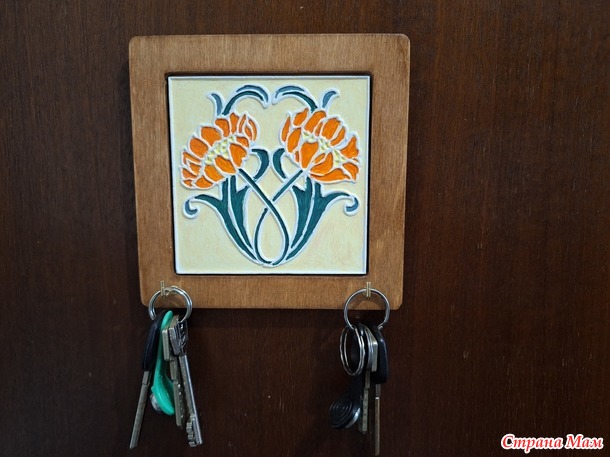Для прихожей я сделала ключницу. Материалы Сначала покрасила рамку крепким чаем и покрыла лаком Потом раскрасила плитку акриловыми красками в 2 слоя и покрыла лаком. И, наконец, прикрутила крючочки. И ключница готова Читать полностью