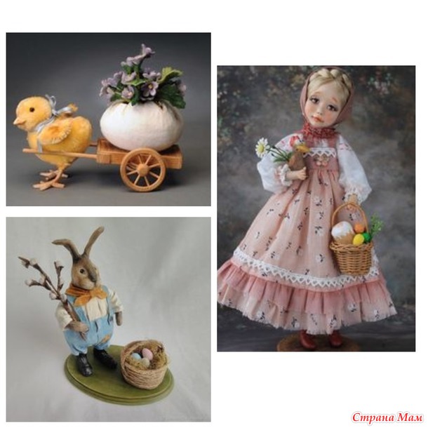 Не воспрещаются разные корзинки, веночки, чехольчики, но.... не забываем, что наша группа, это "ИГРУШКИ СВОИМИ РУКАМИ" значит должен присутствовать игрушечный персонаж, а пасхальное яйцо это дополнительный и обязательный атрибут к персонажу. Выполнено оно может в любой технике, даже самой примитивной, главное, что бы оно присутствовало. Например вырезать из бумаги или расписать ткань из которой будет игрушка, ну если совсем туго