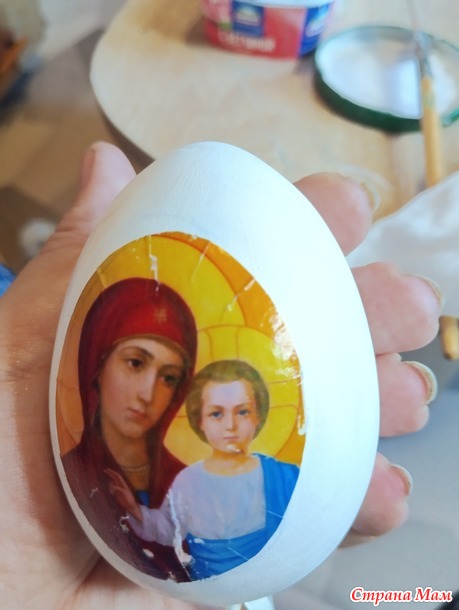 Пока, корявенько)) Складочки отшкурила, где слезла краска, сделала подрисовку. Увлеклась так, что забыла про фото. Далее окрасила в несколько этапов яйцо, приклеила лепнину из моддов и лакировка, лакировка и еще раз лакировка с промежуточной сушкой))