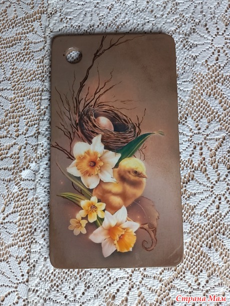 А почему почти? Изначально на ней должен был быть заяц, но я его благополучно испортила, а птичка была в запасе. Но все, что ни делается, всё к лучшему, птичка вписалась идеально !!!