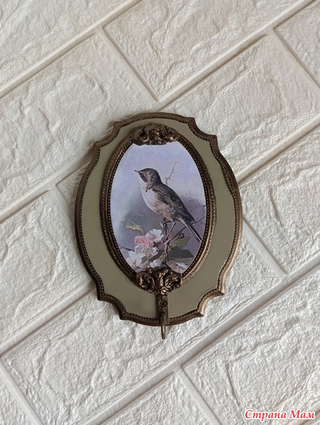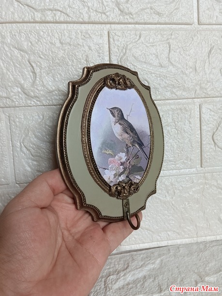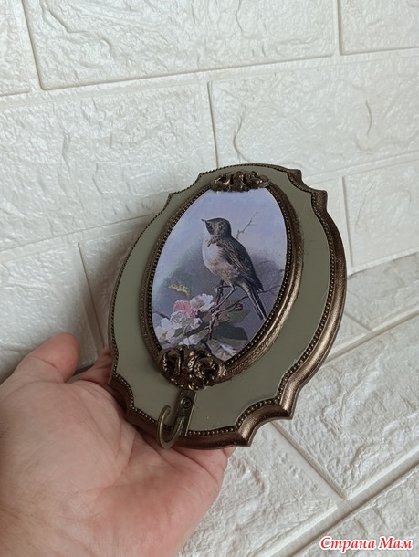 которого я испортила))Ключница покрыта матовым акриловым лаком, лепнина из молдов, шариковая цепочка, акриловые краски.