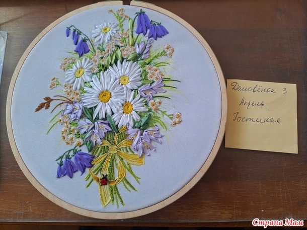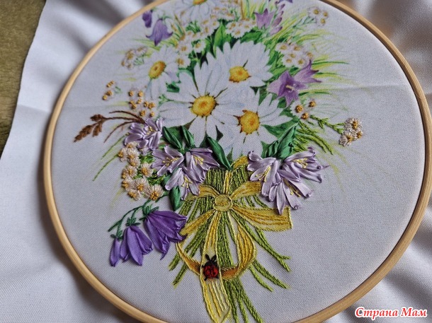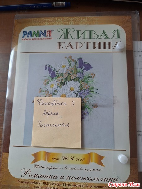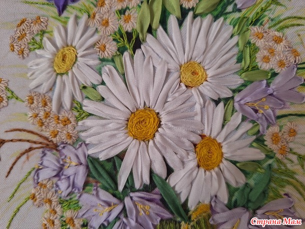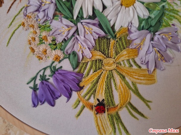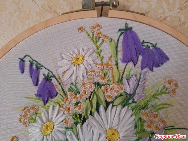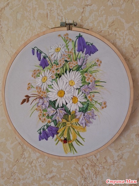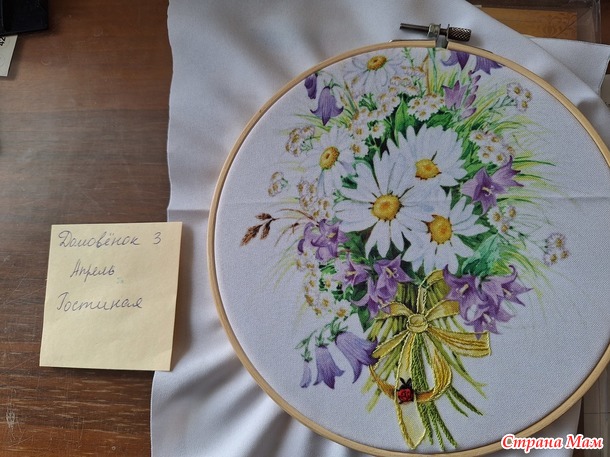 Для гостиной я решила повышивать. Был у меня набор Panna из серии "Живая картина", вышивка делается частично лентами, частично мулине различными швами: стебельчатым и тамбурным швами, французским узелком и стежками с прикрепом