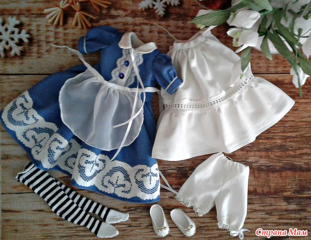 Сшила я наряд для Алисы: панталончики, нижнюю юбку, платье с подкладкой, фартучек, чулочки. Даже туфельки смастерила!
