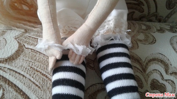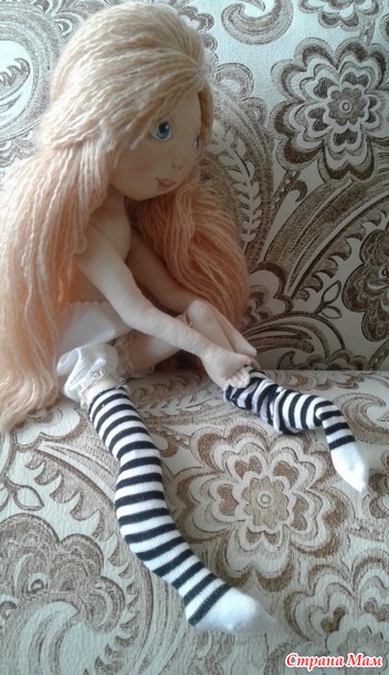 Выкройку дала мастер. Я рискнула впервые шить куклу с шарнирными ножками и с радостью взялась за дело.