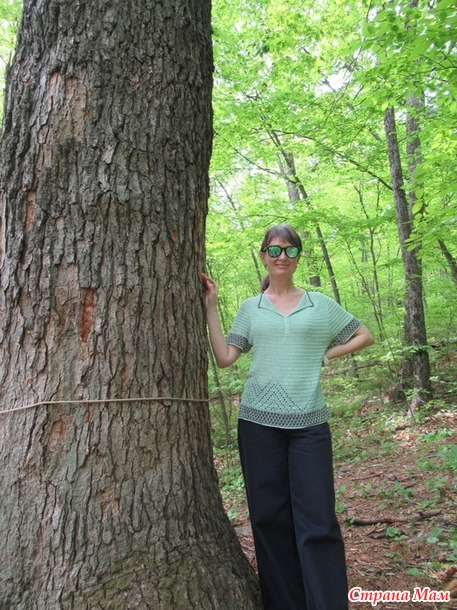 ещё реже показываю. Но очередную льняную футболку связала.