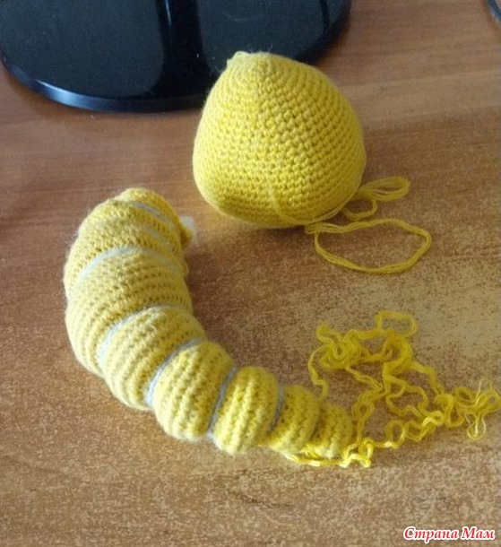 К летнему конкурсу "Жёлтый - жаркий жизни цвет" связалась гусеница по переводному мастер-классу ( автор не указан).