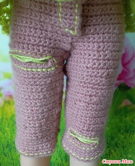 Комплект связан крючком № 2 кловер из пряжи ирис лимонного цвета и пряжи жасмин пудрового цвета.