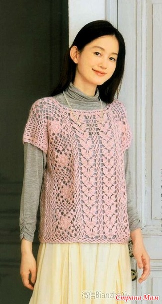 Ажурный топ с сочетанием лиственного узора и вставками из мотивов. Крючок.