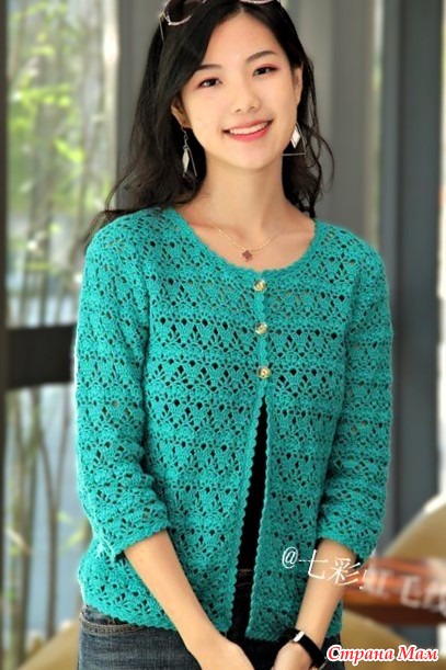 Бирюзовый жакет узором "Лилии". Крючок.