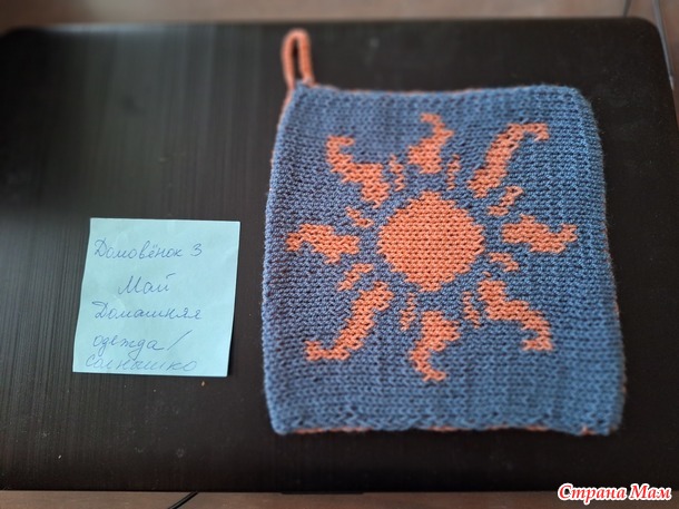 И получилась прихватка. Прихватка связана в технике двухстороннего жаккарда.