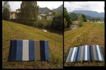 И готовый чехол на природе, после ливней (такое у нас "мокрое" лето). Чехол с молнией на планках, без подклада. На фото после стирки и отпаривания, но ощущение небольшой стянутости(возможно и из-за небольшой разницы а плотности ткани), думаю после недолгого сидения станет немного свободнее.