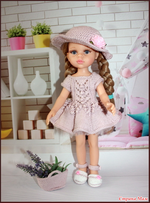 Платье с шишечками вязала по МК LaraTwix Doll,а туфельки, шляпку и сумку -это уже от себя...ПряжаDeluxe Bamboo от Himalaya - 60% Бамбук, 40% Хлопок в 100 г 250 м,спицы 2,5 мм. Для платья сшила подъюбник из фатина