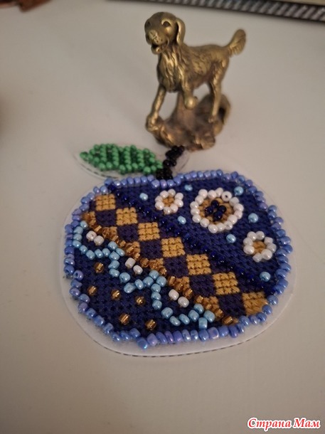 Поздравляю с законченным листом домика ( какой же он огромный!) и яблочком ( хорошенькое!) Флажок осенний, да? В нашу жару сейчас не помешает. И традиционно Мальта умница!