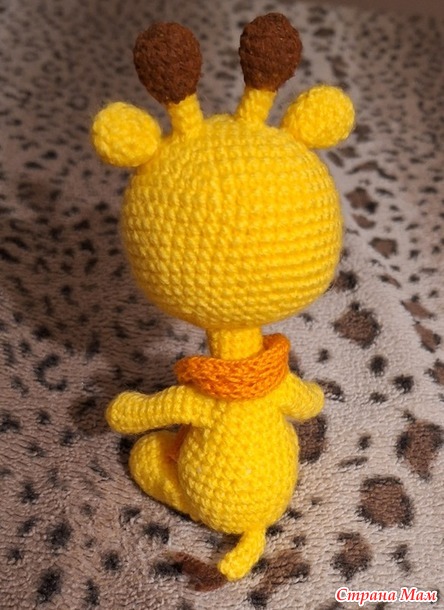 И мой жирафик, фото в альбом потом вставлю нормальное, это на быструю руку. Вязала полностью по описанию, только когда оформляла, сделала утяжки и в мордочку подбила немного синтепона, выражение немного изменилось, так, что от оригинала отличается немножко))
