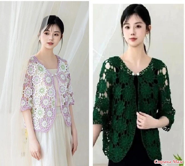 Нежные кардиганы из цветочных мотивов. Крючок.