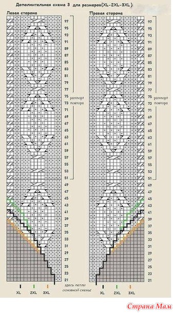Начиная с 21-го круг. ряда, прибавления с обеих сторон основной схемы (61 п.), вязать по дополнительной схеме 3 следующим образом: