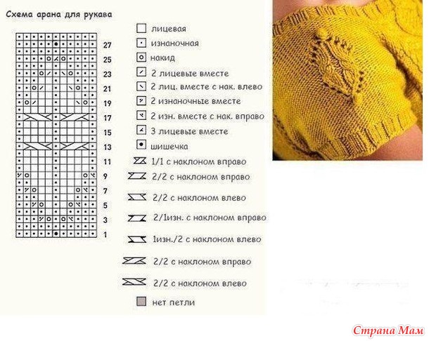61 п. узора из аранов = 23.5 см спицами 4.5 мм.