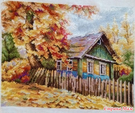 Без вышивки всё равно не смогла. Но приспособилась только на полукрестики. Так что Роща выглядит радостнее других работ. Была