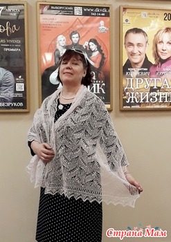 Я когда то тоже связала подобное, но только платок-паутинку. Теперь подумываю связать палантин как у Вас - очень понравился. Хороший получился у Вас недовяз, лёгких Вам петелек!!!