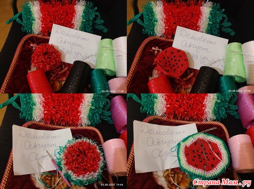 В августе решила для себя любимой связать комплект мочалок- арбузиков (остановите кто-нибудь меня