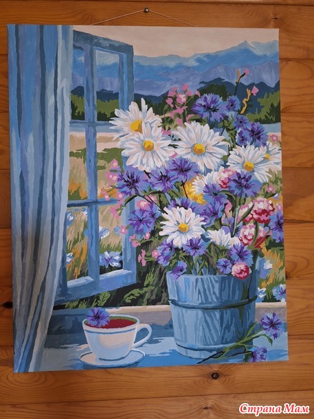 В июне мы творили для дачи. Я решила повесить в доме картину с цветами.