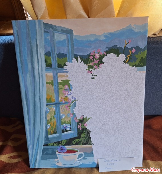 Впечатления от этого набора неоднозначные. Вроде и красиво получилось, но рисовалось сложнее, чем прошлая картина. Краски плохо ложились, оставались белые непрокрашенные точки, и очень быстро загустели, стали как резиновые, хотя при открытии набора были жидкие.
