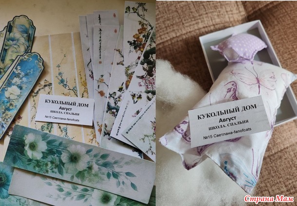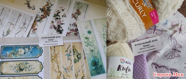 Материалы: распечатки для ширмы, пряжа для двух одеял и ткань для постельного белья.
