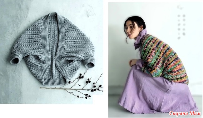 Кардиган-конверт (однотонный и полосатый). Крючок.