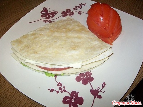 Брат сыну делает тортилью: сыр, грибы, мясная нарезка, помидор или ленивую ачму: лаваш, творог с сыром и зеленью, заливает кефиром с яйцами и запекает.