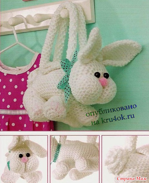 Предлагаю перевод книги с описанием вязаных сумочек для девочек в форме животных. В этой части рассмотрим как связать основу для всех пяти сумок: коровка, поросенок, мишка, щенок, котенок и заяц.