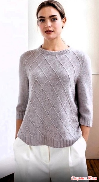 • Тело пуловера вяжется круговыми рядами от нижнего края до подмышек, затем разделить работу на перед и спинку, продолжить перед и спинку по отдельности.