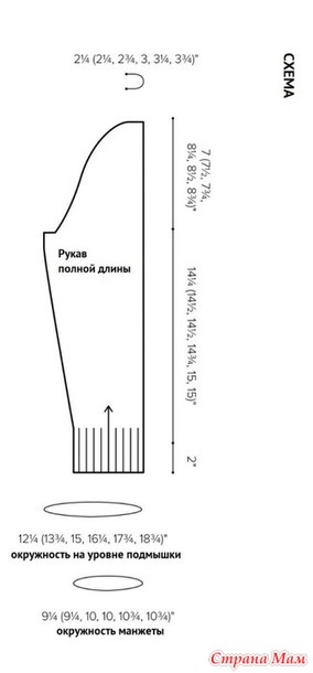 Повторить Круг.р. с прибавками для рукава в каждом 16-м (10-м, 10-м, 8-м, 8-м, 6-м) круг.р. 3 (12, 4, 7, 3, 17) больше раз, затем в каждом 14-м (0, 8-м, 6-м, 6-м, 4-м) ряду 5 (0, 10, 11, 17, 6) раз.