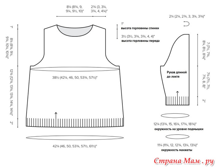 Высота проймы составит приблизительно 8¼ (8¾, 9¼, 9¾, 10¼, 10¾