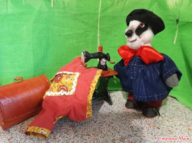 Мистер Баджер готов к работе – надо сшить русскую рубаху-косоворотку, портки, два сарафана девчонкам, с рубашками и фартуками, да ещё и платки им оформить…. Сначала мистер Баджер сшил пробный вариант своей рубахи из тканюшки попроще. А потом уж и нарядную, красную сатиновую рубаху с цветастыми вставками шил смело.